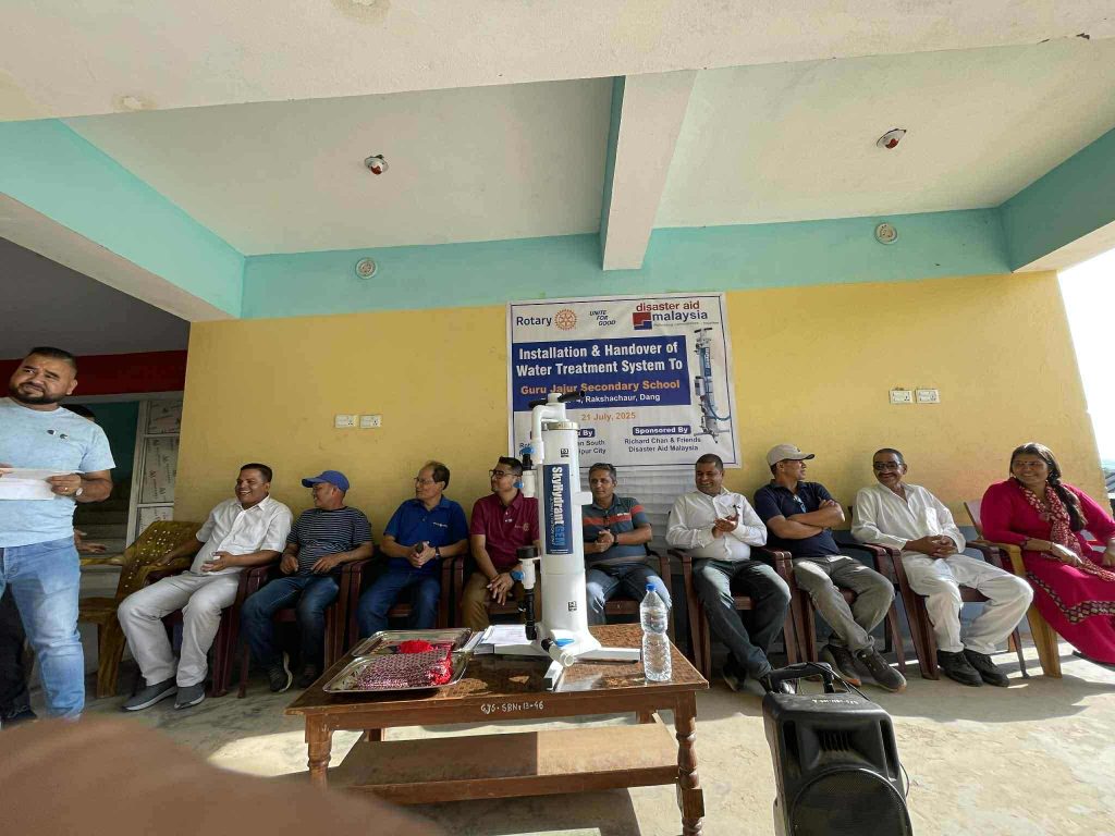 रोटरी क्लब अफ तुलसीपुर सिटि र रोटरी क्लब अफ पाटन साउथको साझेदारीमा गुरुजजुर उच्च माविमा पानी शुद्धिकरणको लागि आधुनिक फिल्टर हस्तान्तरण गरेको छ ।